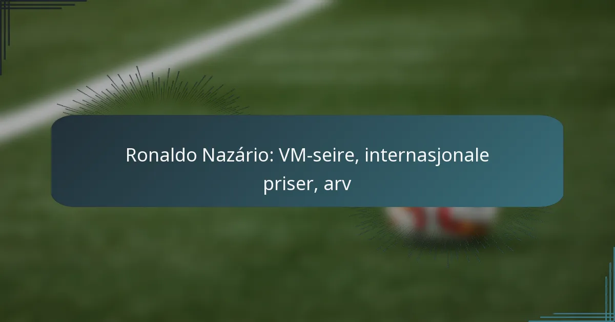 Ronaldo Nazário, en av fotballens største spillere, mottok mange internasjonale utmerkelser gjennom sin karriere, som fremhever hans eksepsjonelle talent og bidrag til sporten. Hans utmerkelser inkluderer flere FIFA verdensspiller-titler, Ballon d’Or-seire, og betydelige prestasjoner i internasjonale turneringer.